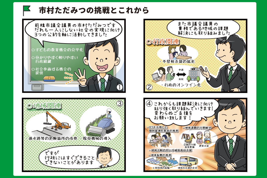日頃より活動へのご理解とご支援を賜り、感謝申し上げます。 市村ただみつです。